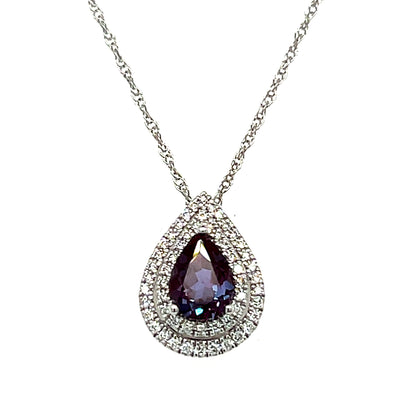 14K Yellow Gold 1.62CT Created Alexandrite 0.16 (24) Carat Total Weight Diamond Pendant Necklace ...