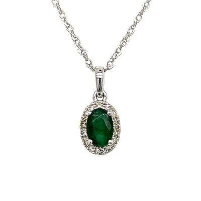 14K Yellow Gold .16 Carat Total Weight Diamond and .75CT Emerald Pendant Necklace on 18" Chain. T...