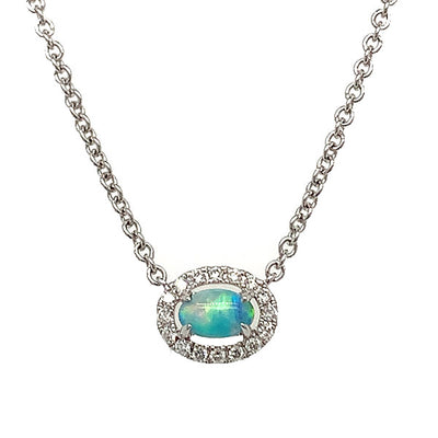 "Afina" WJS Custom Set 14K White Gold 1.15 Carat Oval Aquamarine and 0.11 Carat Diamond Pendant. ...