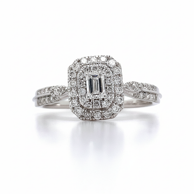 "Fiona" 14K White Gold 1/2 Carat Total Weight 1/6CT Center Emerald Cut Diamond Engagement Ring. T...