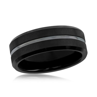 Men's Stainless Steel Black and Silver Cubic Zirconia Ring – Size 1...