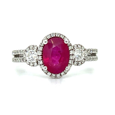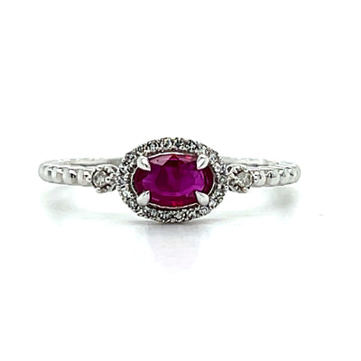 “Alby” 10K Yellow Gold Oval Created Ruby and Diamond Cluster Ring (Estate) A timeless blend of co...