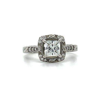 Crafted in polished 14K white gold, this design blends modern sustainability with enduring sophistication, making it perfect for engagements, weddings, or anniversaries.