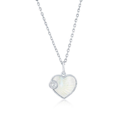 Sterling Silver Square Cubic Zirconia with Center White Inlay Opal Pendant.Elegant and luminous, ...