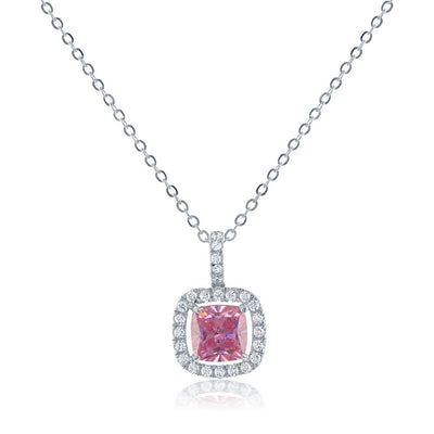 Sterling Silver Pink and White Cubic Zirconia Micro Pave Square Pendant.Refined sparkle meets con...