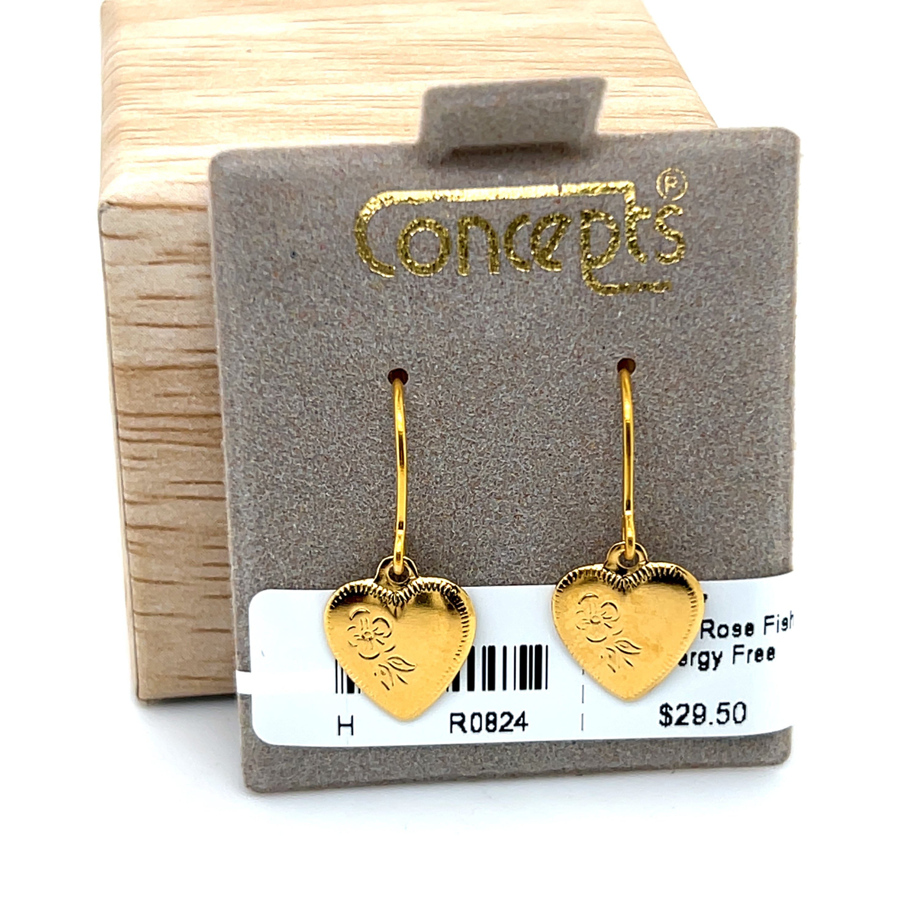 Concepts® Earrings are made of nickel allergy free highly polished surgical stainless steel and 24 Karat Gold. The entire earring is made allergy free. Concepts® are made so that all parts that touch the ear are safe for Sensitive Ears. Concepts® Goldtone styles are made of surgical stainless steel, then a very heavy layer of 24kt gold is electronically plated directly onto the steel. The fine jewelry finish of Concepts® Earrings is guaranteed.
