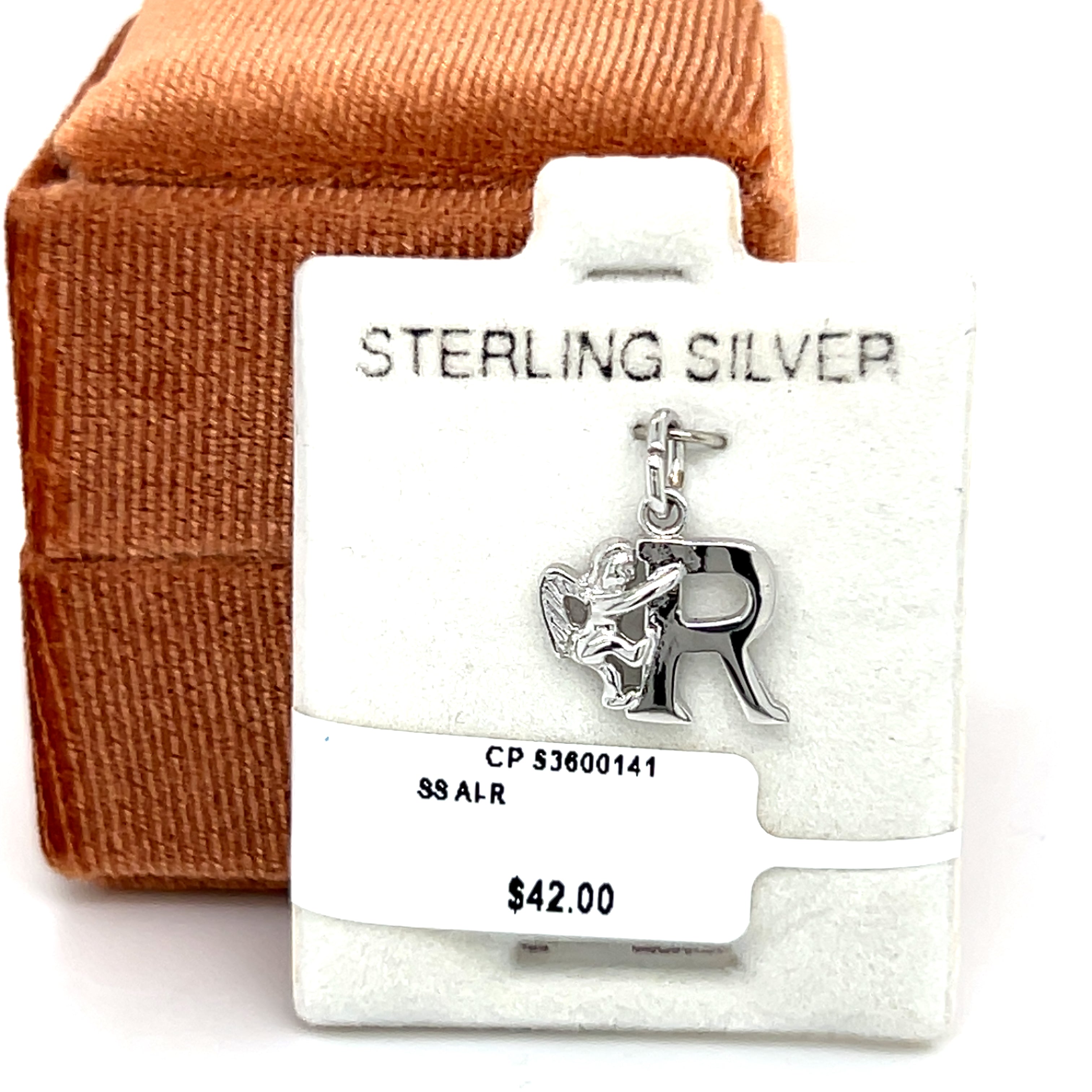 Sterling Silver Angel "R" Charm – A Radiant Blend of Spirit and Identity.